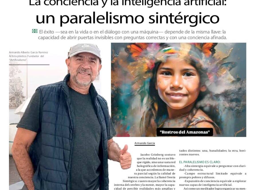 No deja de sorprendernos el maestro Armando García Ramírez con sus creaciones, siempre a la vanguardia en las aplicaciones de nuevas tecnologías en el arte, hemos publicado ya una docena de espectaculares obras creadas en lo que se conoce como arte digital, donde él parte de programas digitales para elaborar obras en computadores, tablets o inclusive en los mismos teléfonos inteligentes, pero ahora ha resuelto pegar el gran salto de la realidad virtual a la IA y utilizarla como herramienta para hacer sus nuevas creaciones. Que sea el mismo afamado artista a través de esta entrevista que nos explique de qué se trata.