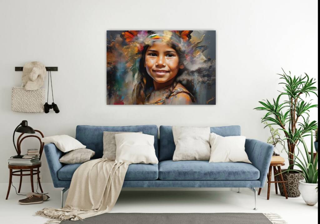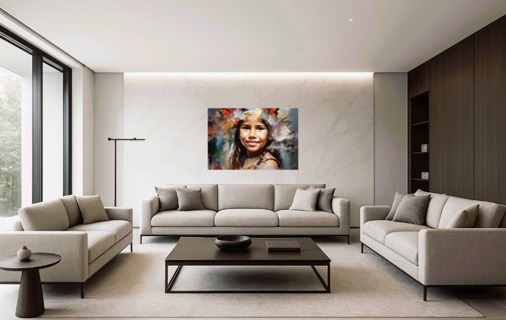 Parte de la serie “Rostros del Amazonas”, esta obra digital sobre lienzo destaca por su fuerza simbólica y su estética cautivadora. La firma del artista en la esquina inferior derecha añade autenticidad y carácter a esta creación exclusiva.